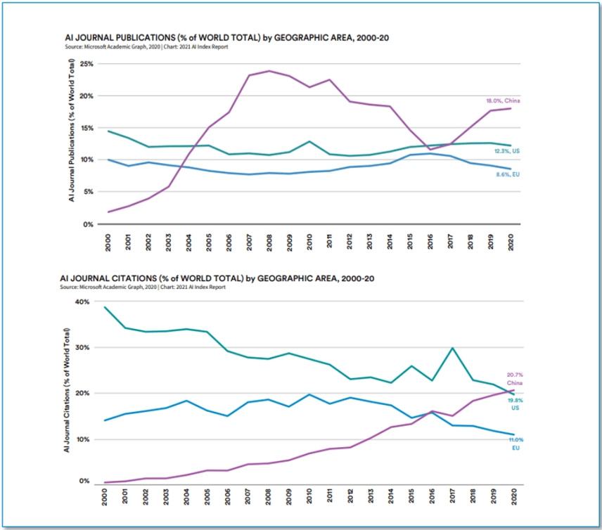 自2015年以来,而全球市场估计正在2025年将冲破336.8亿美元,2020年全球人工智能手艺收入(包罗硬件、软件、办事)为687亿美元,中美成为全球人工智能成长的第一梯队。2020年中国期刊颁发数量以18.0%的比例跨越美国(12.3%)和欧盟(8.6%)。正在政策牵引及营业需求驱动下。
